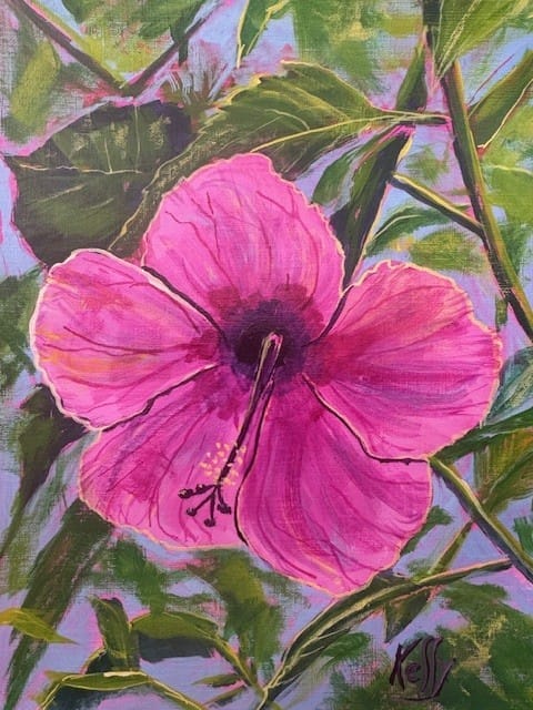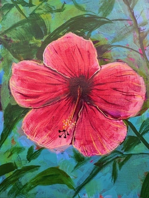 A stunning pink hibiscus filled with soft petals, tropical highlights, and a warm island feel. This project is designed to look impressive while still being simple enough for artists and beginning artists that are new to acrylics.